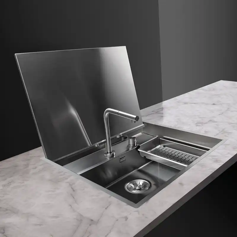 Dissipatori di rifiuti alimentari, Pattumiere per raccolta differenziata, interni cassetti in legno o plastica, illuminazione LED, alogena e neon, prodotti per la pulizia.